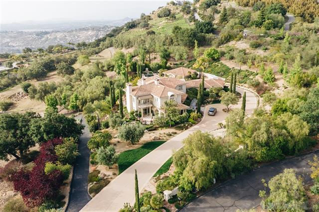 Rancho Santa Fe style living in beautiful North County! BREATHTAKING Custom Estate designed by renowned architect Howard Spector. Appx 6,000sf of livable space, this Mediterranean Masterpiece boasts Award Winning landscape, imported antique fountain, true hand-made clay tile roof, William Ohs Alder cabinetry, beautifully detailed woodwork in library, deep casement windows throughout entire estate, guest house w/full kitchen & bath.